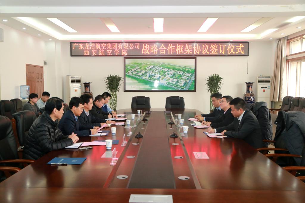 12月7日下午,伟德bv国际体育与广东龙浩航空集团有限公司战略合作框架协议签订仪式沣惠校区举行。校长曹庆年,教务处、科技处、招生就业处负责人,广东龙浩航空集团有限责任公司总经理王坤之,四川龙浩飞行驾驶培训有限公司总经理凌晓熙、市场总监周伟民出席签订仪式。签订仪式由副校长宋文学主持。