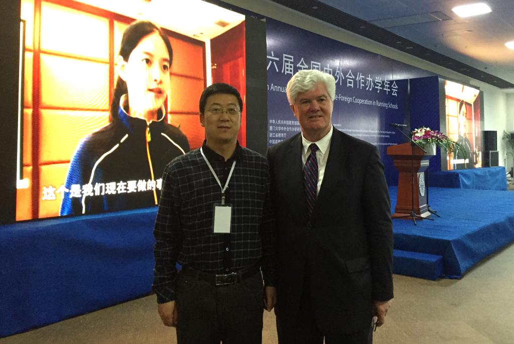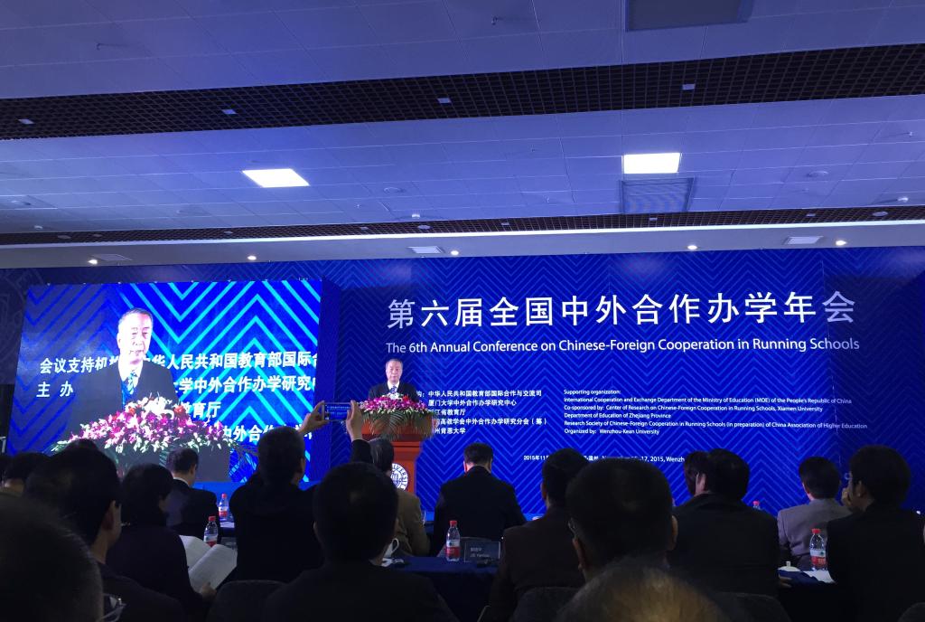 2015年11月16日至17日,伟德官网党政办主任、国际合作与交流处处长蔡应昌、外事科科长王斐参加了在浙江温州举行的第六届全国中外合作办学年会。教育部国际合作与交流司为此次会议支持机构,会议由厦门大学中外合作办学研究中心、浙江省教育厅、中国高等教育学会中外合作办学研究分会共同主办。来自全国多个省市教育厅相关负责人,40多所高校的校长、国际合作处处长等共计460余名代表参会。