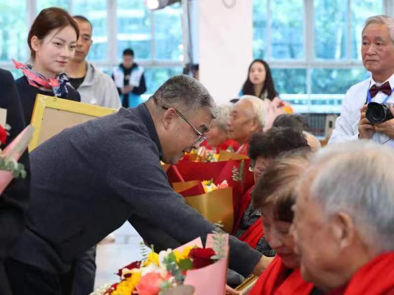 宋文学代表学校党委和全体师生向携手走过金婚钻石婚夫妇致以最美好的祝福,向全体离退休老同志致以崇高敬意和亲切问候。他表示,离退休老同志永远是学校事业发展的宝贵财富和重要资源,老同志把毕生的精力和最美的年华都奉献给了学校,退休之后依然关心关注学校事业发展,为学校建设建言献策、倾心尽力,做出了积极的贡献。金婚钻石婚代表风雨同舟、牵手人生路的爱情故事值得继承和发扬。他强调,全校师生要大力弘扬中华民族尊老敬老传统美德,让尊老敬老之风溢满校园,让老同志老有所养、老有所为、老有所乐。