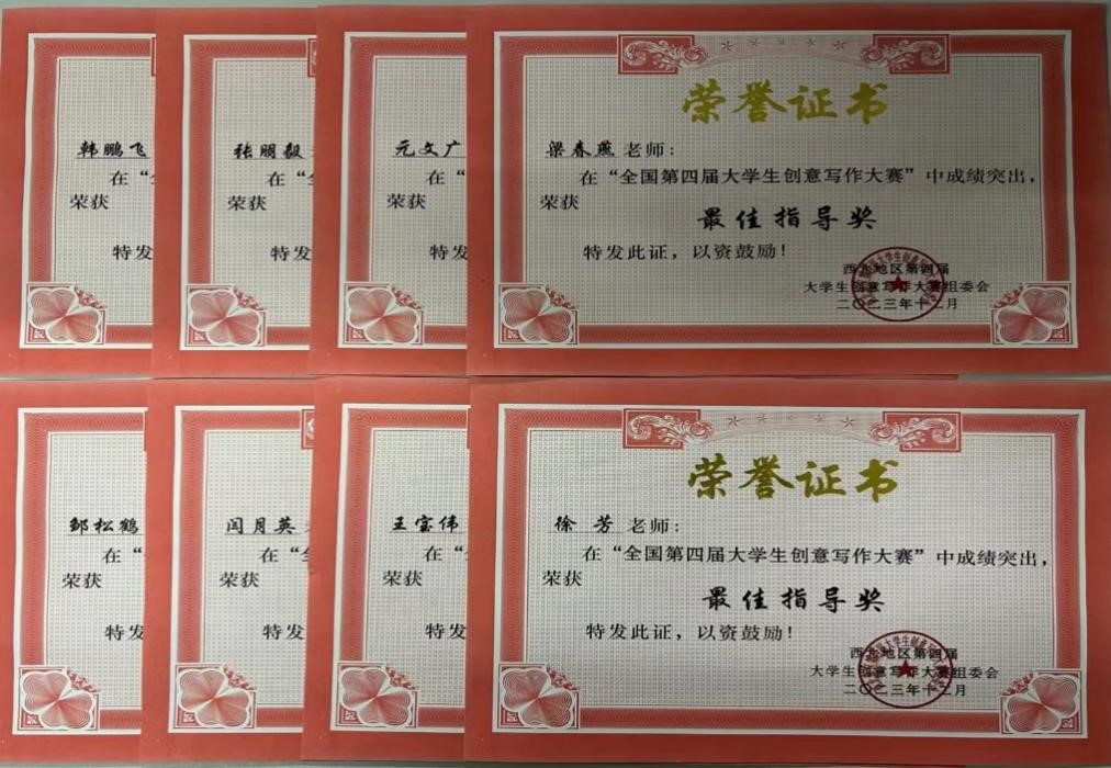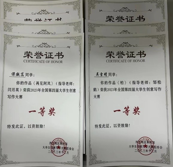 近日,由世界华文创意写作协会主办,西北地区创意写作基地承办的第四届全国大学生创意写作大赛圆满落幕。伟德官网获一等奖7项,二等奖17项,三等奖21项,“最佳指导奖”9项和“优秀组织奖”。