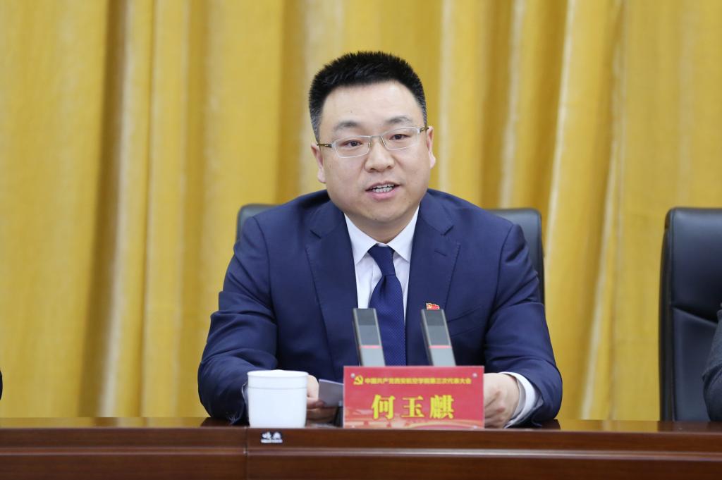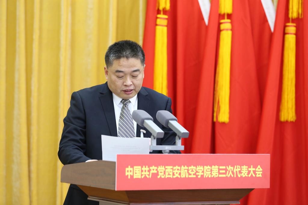 何玉麒代表省委教育工委、省教育厅向大会的召开表示热烈的祝贺,向全校共产党员和师生员工致以诚挚的问候。他指出,第二次党代会以来,学校党委坚持以习近平新时代中国特色社会主义思想为指导,团结带领全校党员和师生员工,紧抓航空产业大发展的历史机遇,围绕高质量应用型本科教育,大力推进内涵建设,办学条件明显改善,育人成效不断提升,科研人才等标志性成果不断获得。特别是近两年来,全校上下团结一心,攻坚克难,顺利通过本科教学合格评估,成功入选“十四五”时期教育强国推进工程储备院校,获评“陕西高校先进校级党委”,学校发展呈现出了崭新的面貌,发展的态势向上向好。他希望全体代表以高度的政治责任感和使命感,认真履行代表职责,正确行使民主权利,选举产生信念坚定、为民服务、勤政务实、勇于担当、清正廉洁的新一届党委、纪委领导集体,并向新一届党委提出四点要求:一是以政治建设为统领,不断坚持和加强党对学校工作的全面领导。二是落实立德树人根本任务,努力培养担当民族复兴大任的时代新人。三是扎根陕西,服务大局,加快推动学校高质量内涵式发展。四是坚持从严管党治党,切实营造风清气正的校园政治生态。