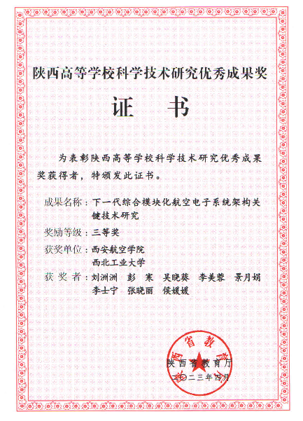 学院高度重视师资队伍建设,不断优化师资队伍结构,2023年引进博士4人。鼓励教师积极参加教学竞赛,9人分别获省教学技能竞赛一等奖、二等奖并被评为教学标兵称号,1人获教学课堂创新大赛一等奖,80余人次获评各级各类优秀指导老师。科研氛围逐步形成,科研到款超过200万元,教师发表科研学术论文24篇,其中SCI检索5篇,EI检索1篇,CSCD1篇,核心期刊17篇,授权发明专利1项,发明专利实审7项,申请5项,出版编著3部。获批陕西省自然科学基础研究计划青年项目1项,西安市科技局项目1项,荣获陕西高等学校科学技术研究优秀成果奖二等奖1项,获批校级科技创新团队培育项目1项。学院科研团队成果《下一代综合模块化航空电子系统架构关键技术研究》,荣获2023年度陕西高等学校科学技术研究优秀成果三等奖。