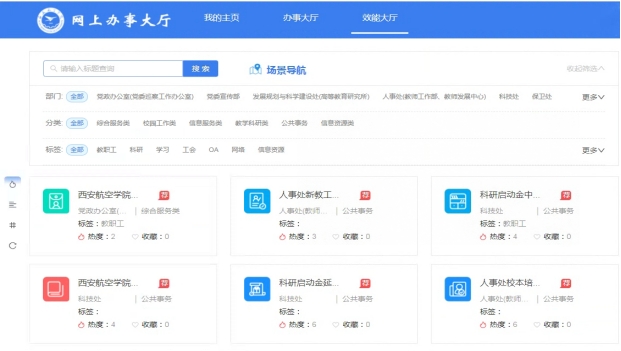 网络信息中心在各部门工作程序、流程梳理和优化的基础上,以“网上办事大厅”服务平台为抓手,全面梳理面向师生的线上线下服务事项和各类报表清单,协助相关部门推进服务融合和流程重塑,实现一网受理、只跑一次、一次办成、协同服务的目标。在各业务部门的协助下,平台已为13个部门提供了56个线上办事业务,PC端及移动端可同步使用,实现简单、便捷的一站式信息化服务。